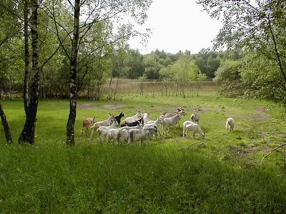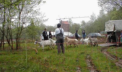 Landschaftspflege: Grube Weiß (Bergisch Gladbach)![]() ![]() Photos: Carsten Mai Ziegen weiden für den Naturschutz Seit 2002 werden in der Grube Weiß Ziegen in der Landschaftspflege eingesetzt. Ihre Aufgabe ist es, die Verbuschung und Bewaldung des FFH-Gebietes aufzuhalten und für eine Erweiterung der waldfreien Flächen zu sorgen. Dies ist notwendig, weil Gelbbauchunken und viele andere in der Grube Weiß lebende seltene Tier- und Pflanzenarten sonnige, warme Lebensräume benötigen. Nach der Stillegung der Grube Weiß eroberte innerhalb weniger Jahrzehnte der Wald fast alle ehemals völlig vegetationslosen Grubenbereiche. Durch diese Entwicklung verloren zahlreiche spezialisierte Arten ihre Lebensräume. Das Bemühen, die fortschreitende Bewaldung per Hand aufzuhalten, scheiterte an fehlenden Arbeitskräften, an finanziellen Möglichkeiten und letztlich an der Geschwindigkeit, mit der die jungen Gehölze aufwuchsen. Ziegen fressen mit Vorliebe Blätter, junge Äste und auch Rinde von Büschen und Bäumen und sind daher für die Entbuschungsarbeit besonders geeignet. Junge Bäume werden durch ständigen Verbiß am Weiterwachsen gehindert und sterben schließlich ab. Auch viele ältere Gehölze werden durch Abschälen der Rinde zum Absterben gebracht. Brechen durch Sturm oder Schneebruch Bäume um, verhindern die Ziegen den Jungwuchs in der entstandenen Lücke und erhalten diese dadurch. Durch ständiges Belaufen bleiben steile Böschungen frei von Bewuchs und dem Sonnenlicht voll ausgesetzt. Dabei wirkt die Anwesenheit der Ziegen auf die Wildtiere der Grube Weiß nicht als Störung, wie es etwa bei Waldarbeitern mit Motorsägen der Fall wäre und es entsteht kein aufwendig zu entsorgender Abfall. ![]() Die steilen Bergwerkshalden bleiben durch das Herumklettern der Ziegen vegetationsarm. Hier kommen ganz besondere Tier- und Pflanzenarten vor wie der Quirlblättrige Salbei (Salvia verticillata) oder die Geburtshelferkröte. Pressebericht